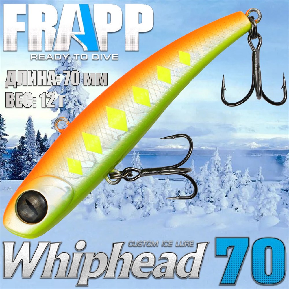 Деликатные приманки: длина 70 мм, масса 12 г. Материал: традиционно для вибов FRAPP - качественный, стойкий к зубам хищника ABS - пластик.